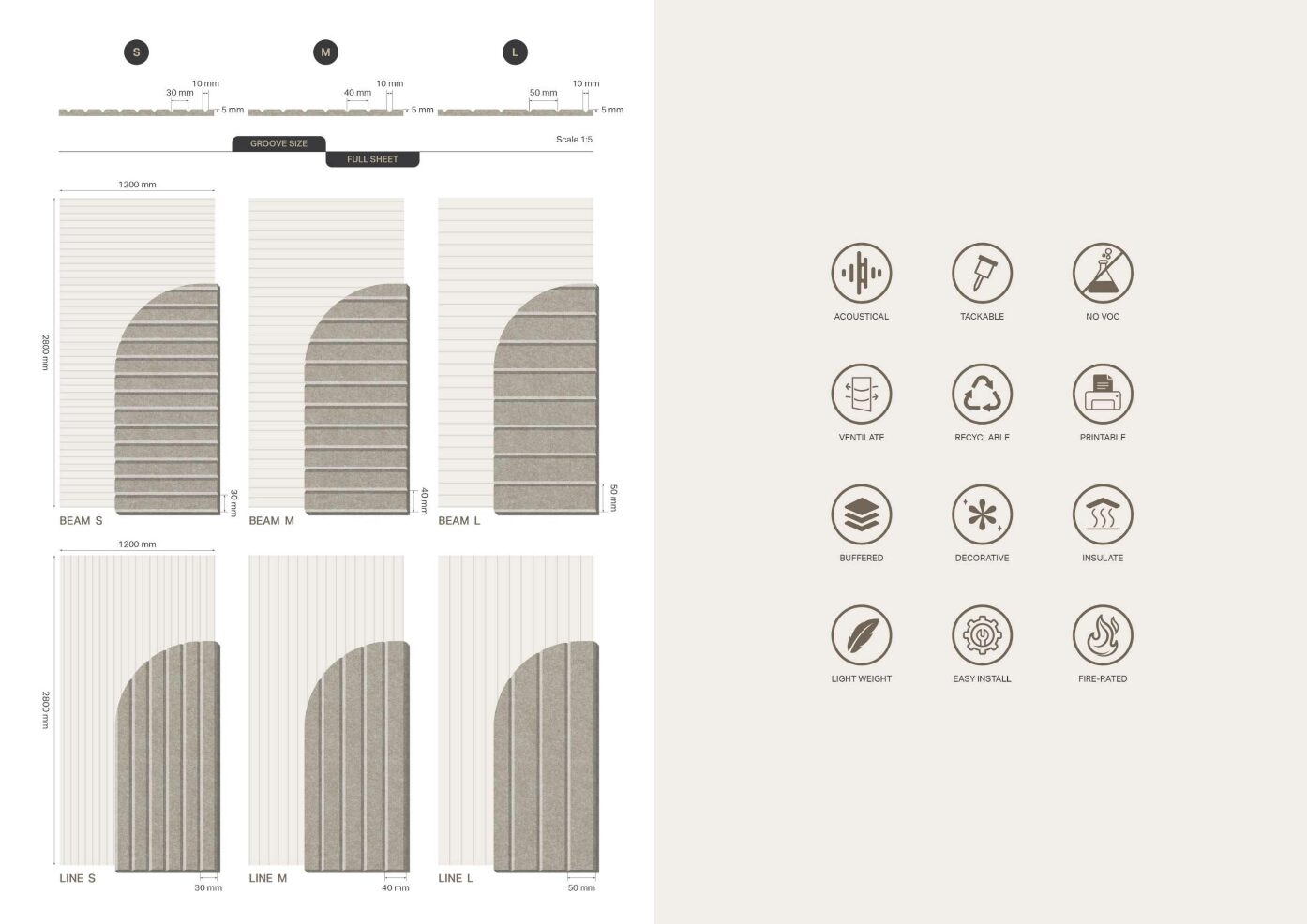 These groove widths offer visual variation and acoustic depth, turning your wall into a functional design statement.